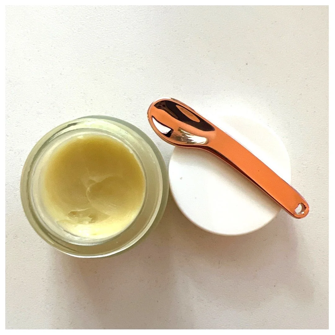 I always prefer to use a spatula with a product like balms to avoid cross-contamination. The Botanical Balm is preservative-free, so it’s ideal for helping stop dirt, bacteria and other undesirable things from getting into it.
