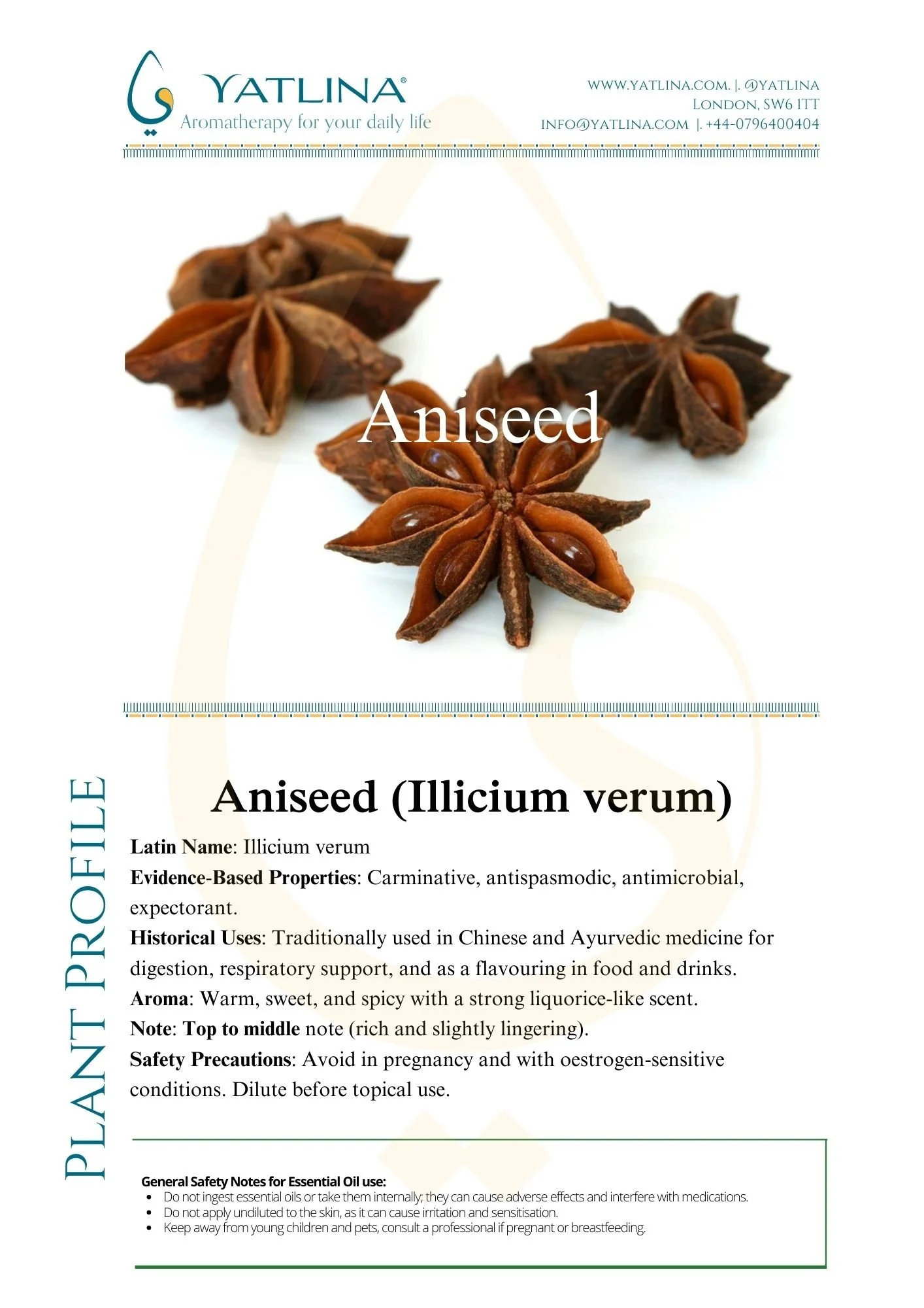Aniseed-Illicium verum Plant profileEssential oilAromatherapy 11 Apr Written By Yasmine ElGhamrawy Featured Anethi-Anethum sowa Aniseed-Illicium verum Atlas Cedarwood-Cedrus atlantica Basil Ocimum basilicum Benzoin Styrax benzoin Bergamot Citrus bergamia Black Pepper Piper nigrum (Copy) Bergamot Mint Mentha citrata Black Spruce Picea mariana Camphor Cinnamomum camphora Cardamom Elettaria cardamomum Carrot Seed Daucus carota Cedarwood Virginia Juniperus virginiana Celery Seed Apium graveolens Chamomile Matricaria chamomilla Clementine Citrus clementina Clary Sage Salvia sclarea Coriander Seed Coriandrum sativum Cumin Cuminum cyminum Cypress Cupressus sempervirens Dill Anethum graveolens Elemi Canarium luzonicum Eucalyptus globulus Eucalyptus radiata Frankincense Boswellia carterii Geranium Pelargonium graveolens Ginger Zingiber officinale Grapefruit Citrus paradisi Gurjun Balsam Dipterocarpus turbinatus Helichrysum subsp. italicum Plant profileAlchemy of plantsAniseedIllicium verum Yasmine ElGhamrawy https://www.yatlina.com